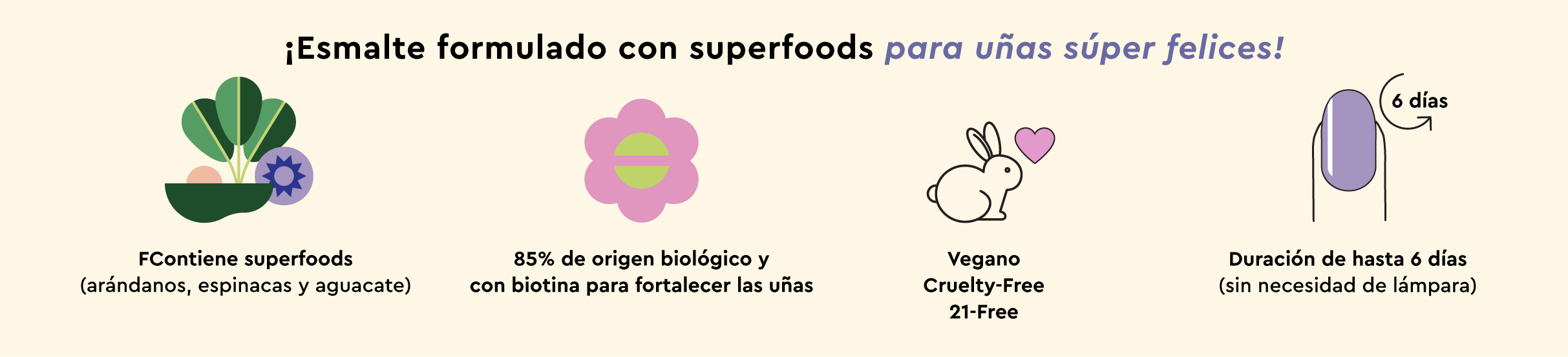 ¡Esmalte formulado con superfoods para uñas súper felices!