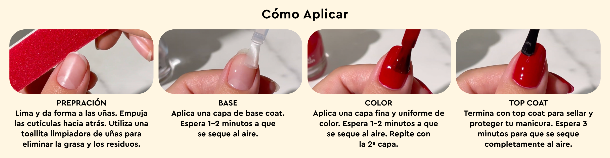 First prep your nails by using a nail cleanser pad to remove all dust and oils. This will provide a good canvas to apply the polish. Do not use hand cream or lotion at this stage (this can be applied at the end). Starting with a clean, dry nail surface, first paint a layer of base coat. Then apply thin, even layers of your chosen color. Finally, seal with a top coat for added durability. When used with both the base and top coat, Le Sweet nail polish can last up to 8-9 days. Avoid soaking your nails in water and wear gloves during cleaning. Regular touch-ups and proper storage of your nail polish also help maintain a longer-lasting manicure.
