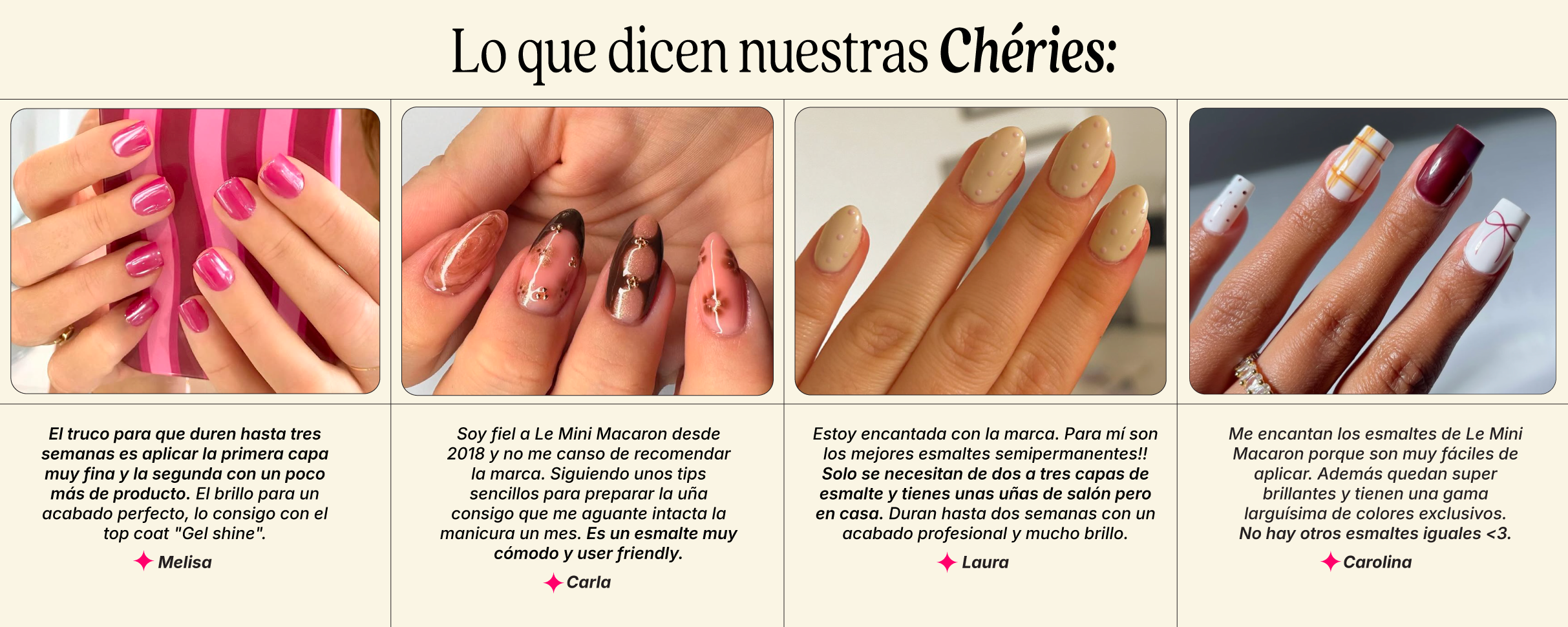 El esmalte de gel 1-paso tiene una duración de hasta 2 semanas. Para eliminarlo fácilmente, usa nuestras toallitas quitaesmalte.