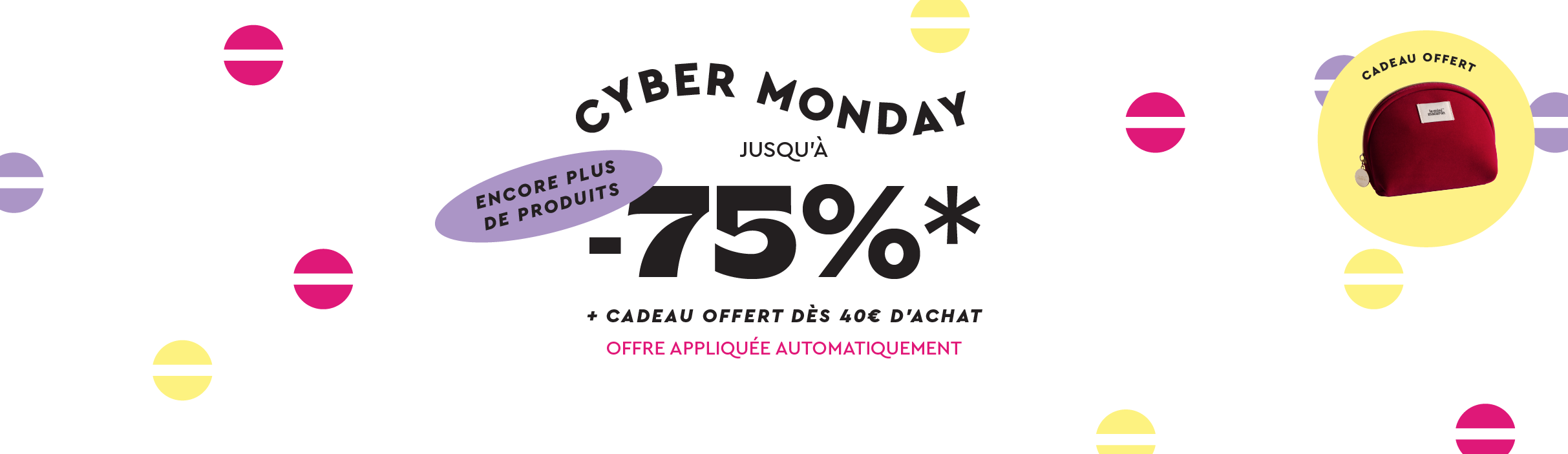 Les offres CYBER MONDAY “de -20 à -75% et un cadeau offert dès 40€ d’achat” ont lieu le 2 décembre jusqu’à 23h59. Offre valable jusqu'à épuisement des stocks. Une fois le stock épuisé, le produit sera remplacé par un produit équivalent choisi par Le Mini Macaron. Les remises sont appliquées directement et ne sont valables que sur les produits sélectionnés. Offre non rétroactive et non cumulable avec d’autres promotions. Le Mini Macaron se réserve le droit de modifier les termes de cette offre à tout moment. Valable uniquement sur leminimacaron.eu.