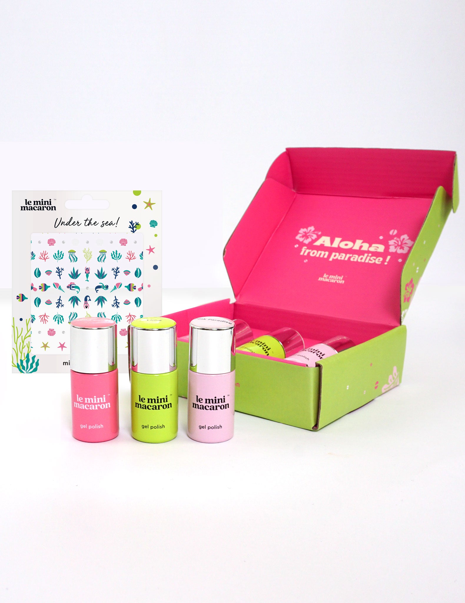 Prêt.e au décollage ? Inspirée par la beauté des paysages incroyables d’Hawaï, notre édition limitée vous transporte sur une plage paradisiaque de sable fin. Retrouvez sur vos ongles l’esprit serein et sauvage d’Hawaï avec ces 3 nouvelles teintes irrésistibles et un set rêveur de stickers “under the sea”.