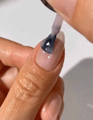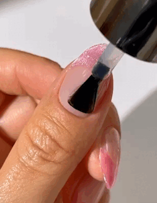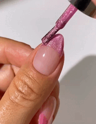 Appliquez deux couches fines de vernis semi-permanent clair (comme Blush) en base.Séchez chaque couche.