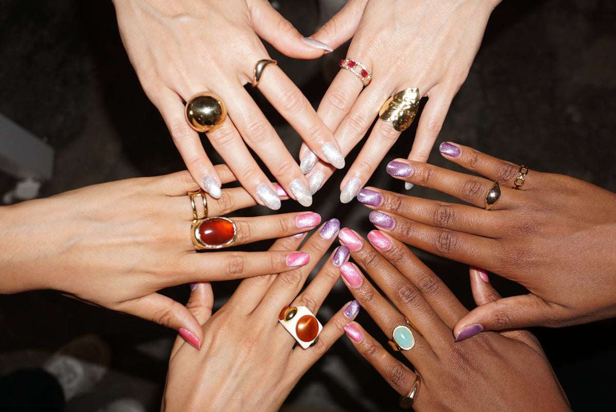 This special polish consists of a magnetic gel that contains metallic particles. When exposed to a magnet before curing, the particles flow together to create a multi-dimensional, shimmering effect like a cat's eye, with a lovely velvet texture.
