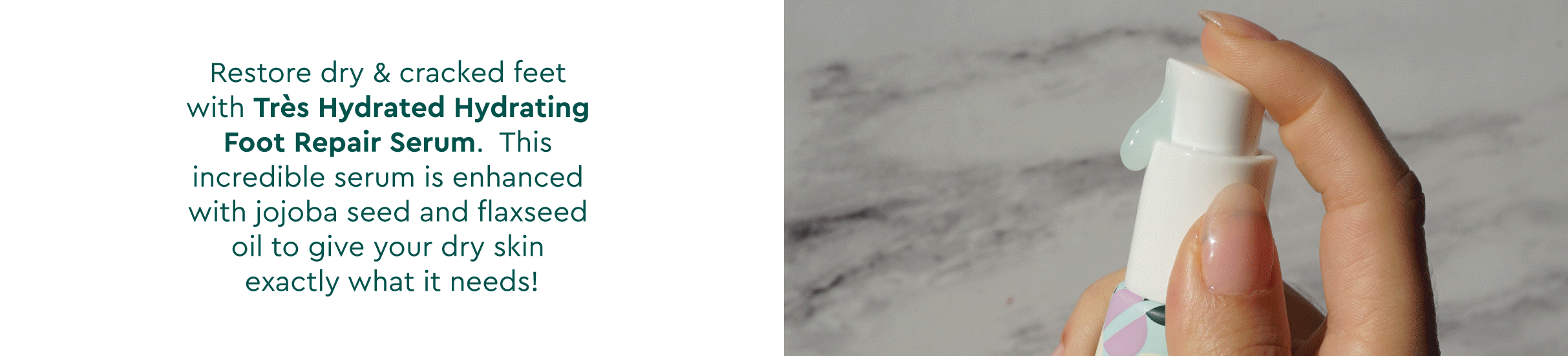 Très Hydrated - Hydrating Foot Repair Serum: Ultra-light daily treatment restores moisture to dry feet and cracked heels.