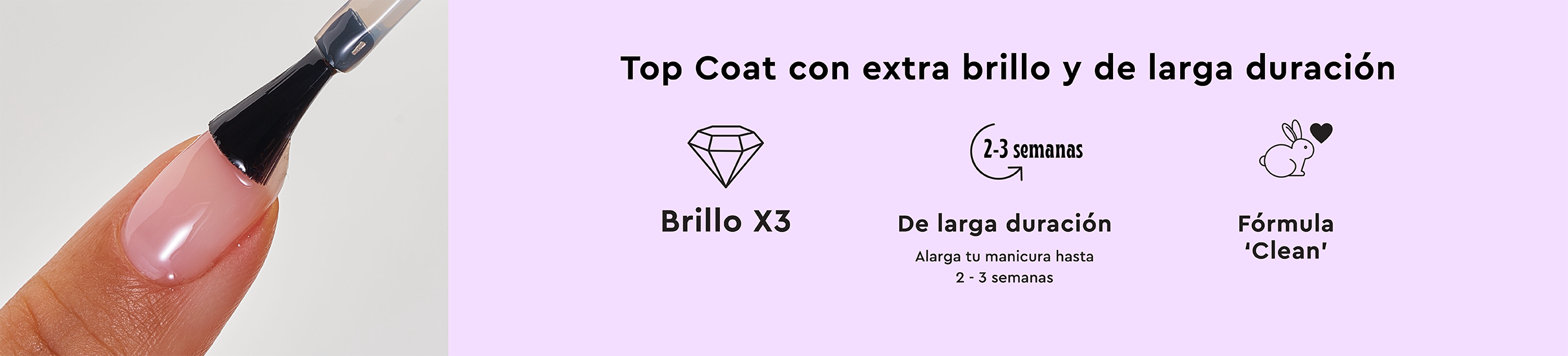 ¡Nuestro acabado triple brillo (con una fórmula nueva, más suave) aporta 3 veces más brillo y el acabado duradero! Haz que tu manicura dure hasta 2-3 semanas con nuestro top coat: mayor brillo y mayor duración